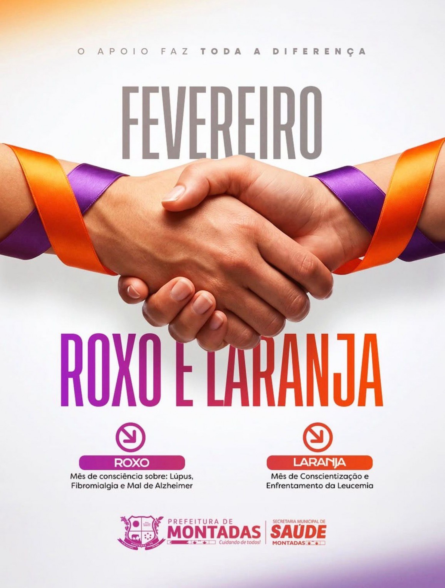 A saúde é prioridade em nossa gestão. Por isso, a Prefeitura de Montadas, através da Secretaria de Saúde, adere às campanhas Fevereiro Roxo e Laranja, reforçando a importância do cuidado preventivo.