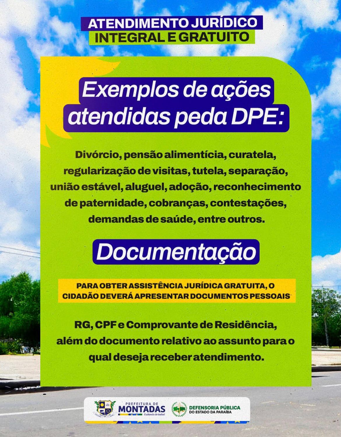 A iniciativa visa facilitar o acesso à justiça e garantir cidadania aos moradores de Montadas. Entre os serviços oferecidos, destacam-se: