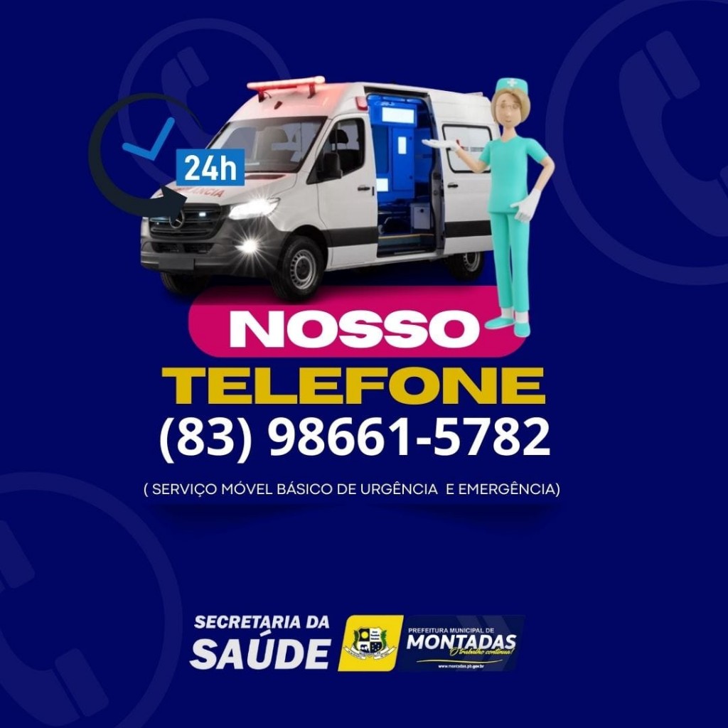 A Prefeitura de Montadas por meio da Secretaria Municipal da Saúde implantou um novo serviço no município, um telefone, a disposição da população para o atendimento de urgência e emergência, quem fará esse atendimento é a enfermeira plantonista. O número disponibilizado para ligações é o 83 98661 5782.