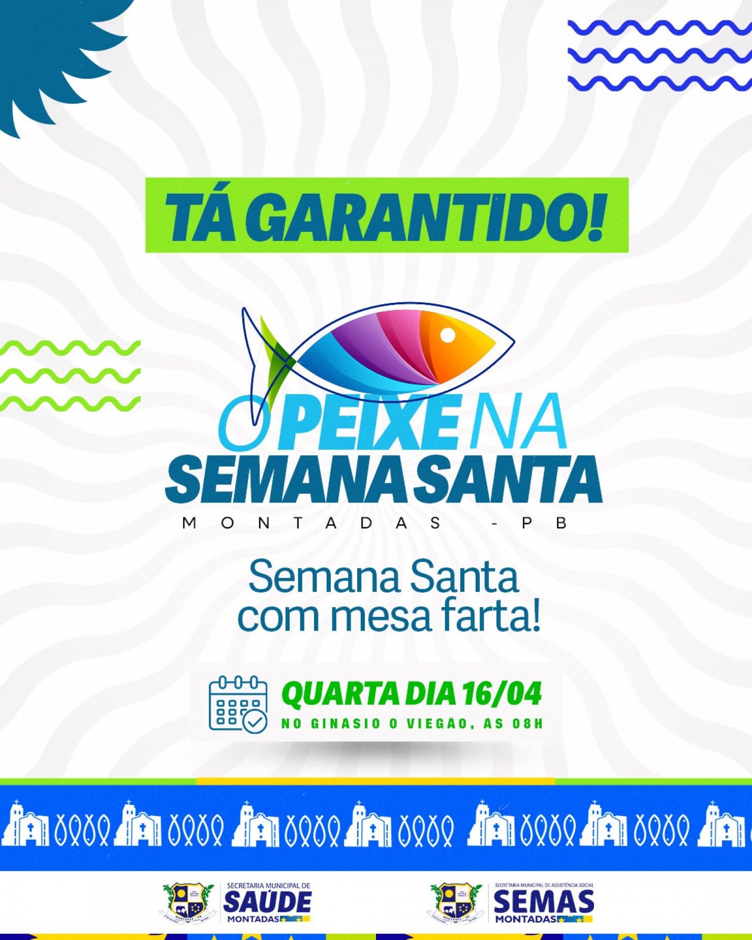 A Prefeitura Municipal de Montadas, por meio da Secretaria de Assistência Social e em parceria com a Secretaria de Saúde, reafirma seu compromisso com a população e realizará, nesta quarta-feira, dia 16 de abril, a tradicional entrega do peixe da Semana Santa.